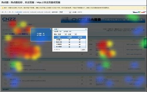 CNZZ推出的“熱點圖”功能,通過不同顏色區分不同區域的點擊熱度,可以更加直觀地展現訪客興趣,高效追蹤訪客來源,從而多維度分析各種特征的訪客點擊情況。